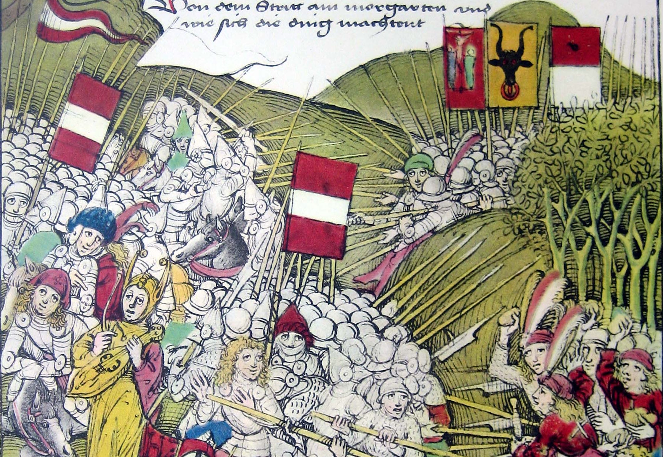 En 1315 finalement, la confrontation armée est inévitable. Sur le champ de bataille de Morgarten, l’avancée Habsbourg est stoppée (pour un temps). Une alliance de circonstance vient de faire reculer une puissance princière.