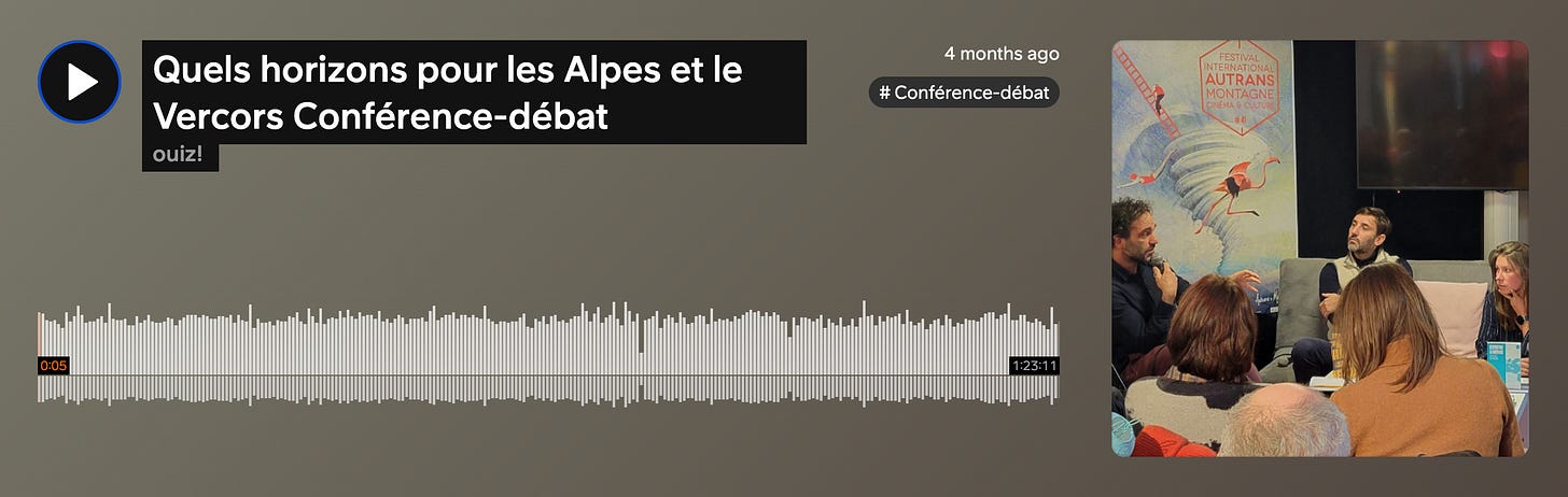 Le vendredi 6 décembre 2024, à 14h, à Autrans, avec Fiona Mille et Guillaume Desmurs pour modérateur, nous avons échangé sur nos visions et nos expériences pour imaginer la montagne de demain.