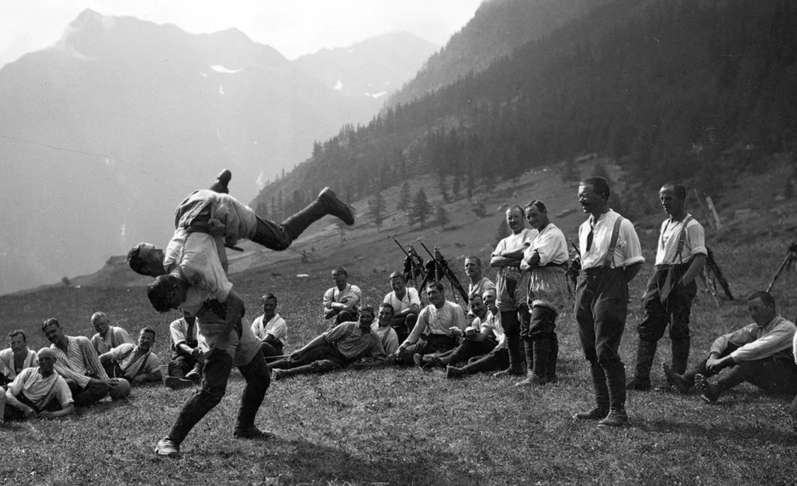6/7. Comme vous le voyez sur cette photographie, le sport bénéficie d'une grande popularité en Suisse, et les lutteurs suisses sont très respectés et considérés comme des athlètes d'élite.