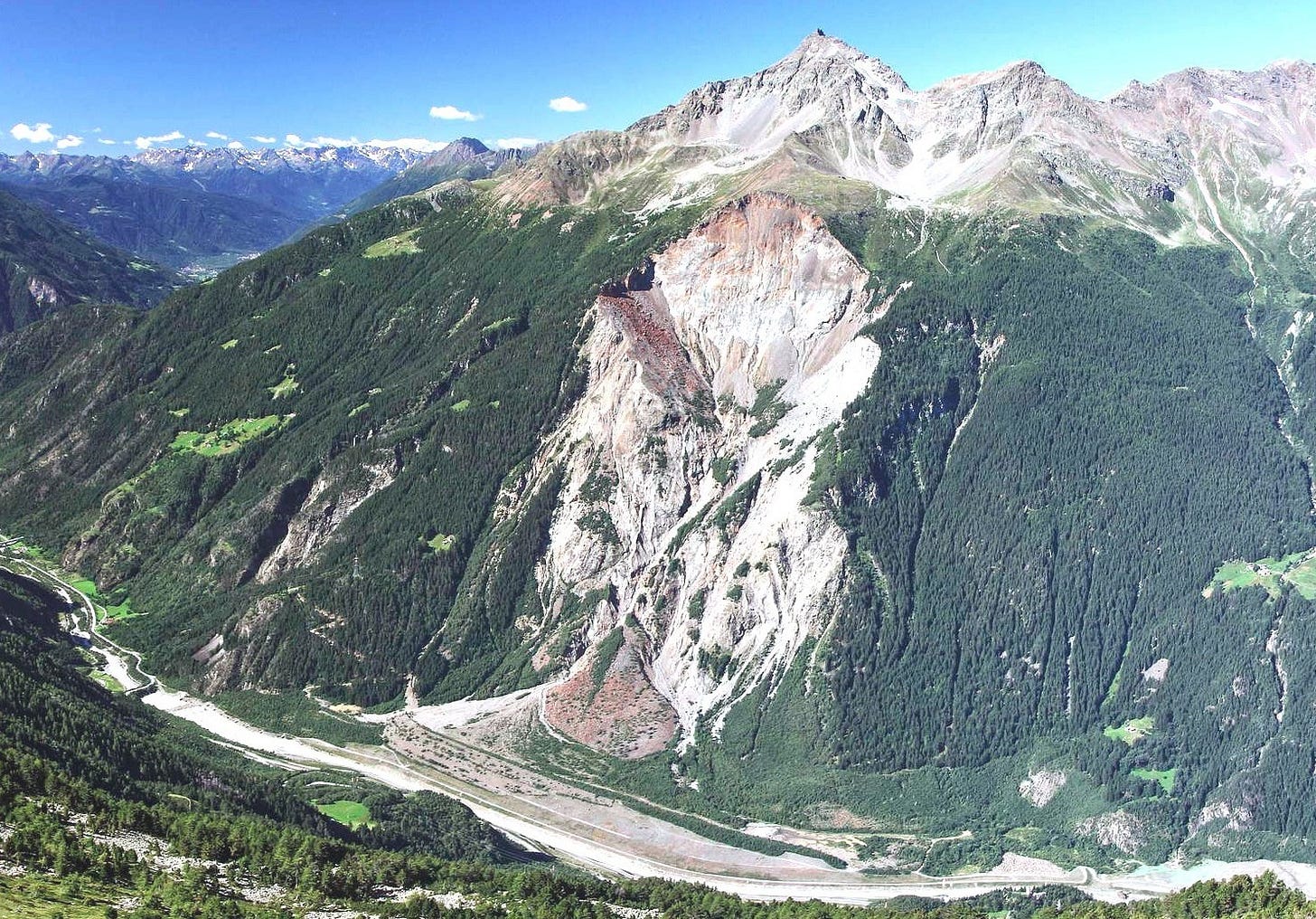 8/13. Le 28 juillet 1987, en aval de Bormio (Valteline), la vallée étroite de Pola est ruinée à jamais par l’effondrement du Monte Zandila : 40 millions de m³ (quatre fois plus que Blatten) détruisent cinq localités (dont Sant’Antonio Morignone) et causent la mort de 53 personnes. Les masses rocheuses entravent l’écoulement de l’Adda et menacent toute la Valteline d’un tsunami. En attendant la vidange du lac, des évacuations massives sont donc ordonnées.
